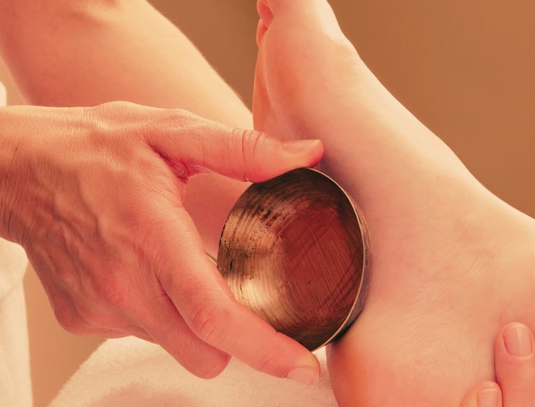 Le massage des pieds au bol Kansu est un soin traditionnel issu de l’Ayurveda, reconnu pour ses puissants effets relaxants et rééquilibrants.