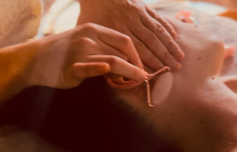 Nettoyage délicat aux mushrooms et oshibori pour une détente musculaire approfondie et drainage précis. Les manœuvres de stretching facial et myofacial sont combinées aux techniques Kobido et gua sha pour stimuler la tonicité et l’éclat.